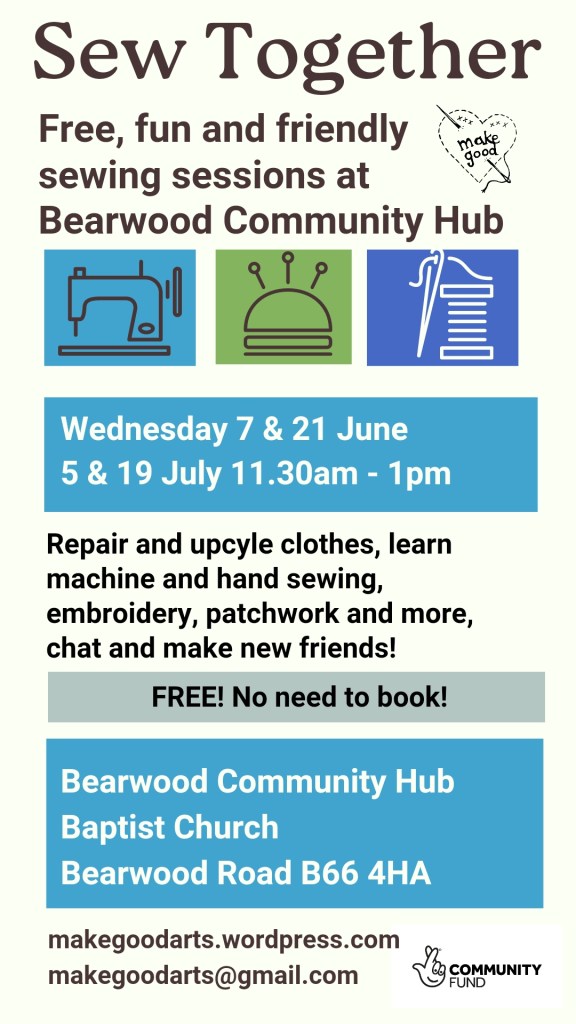 In Spring 2023, we launched our Sew Together programme, supported by the National Lottery Community Fund. Sew Together ran from March to July 2023 and saw us sharing sewing skills in community settings across Sandwell and Birmingham.