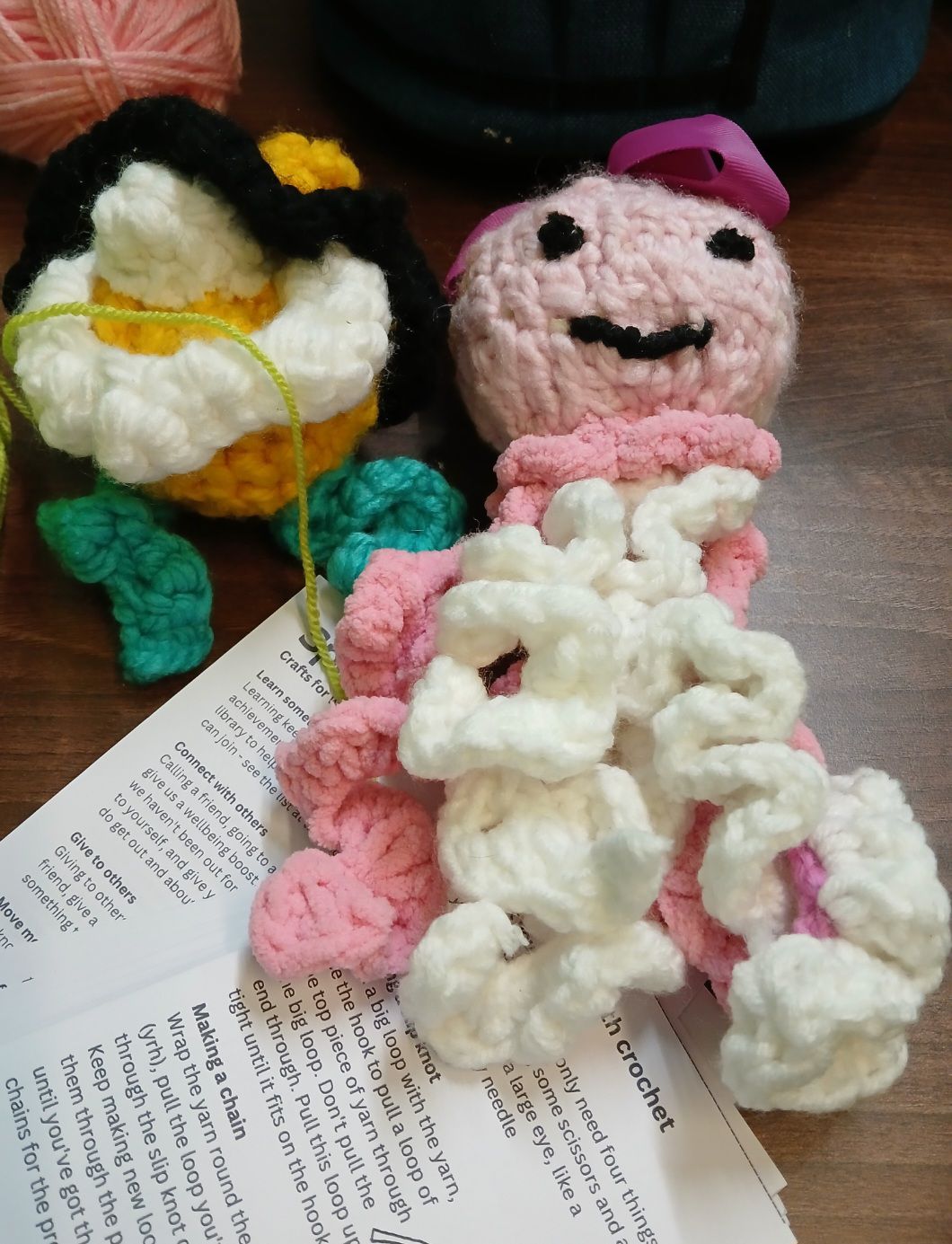Spinning a Yarn is suitable for adults with any level of crafting experience, even if you’ve never picked up a crochet hook in your life! Each week we’ll learn new techniques, and have time and space to talk about whatever is on our minds. Sessions will be run by Claire, a qualified Mental Health First Aider and crafter, and supported with information and tips to help you feel better.